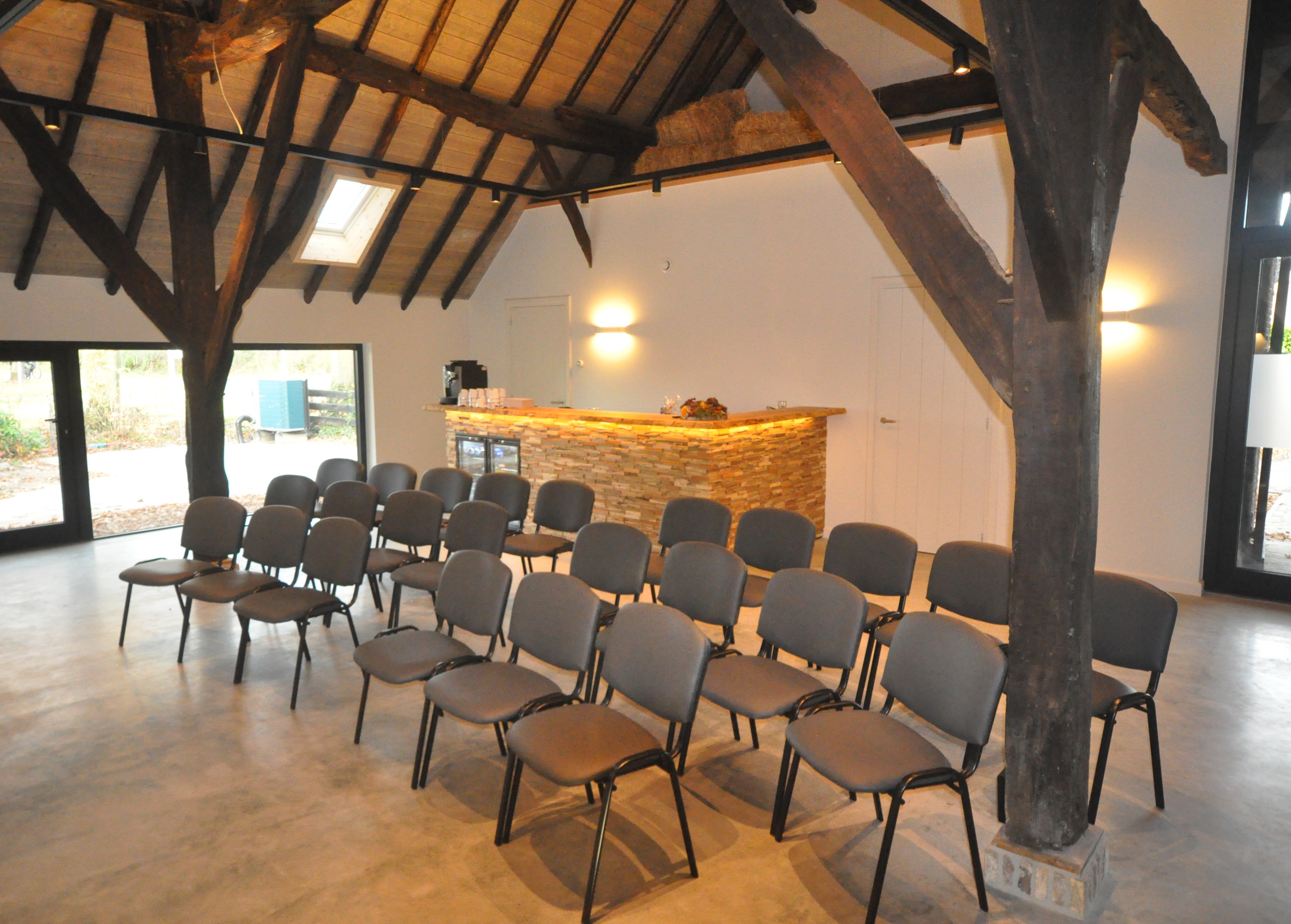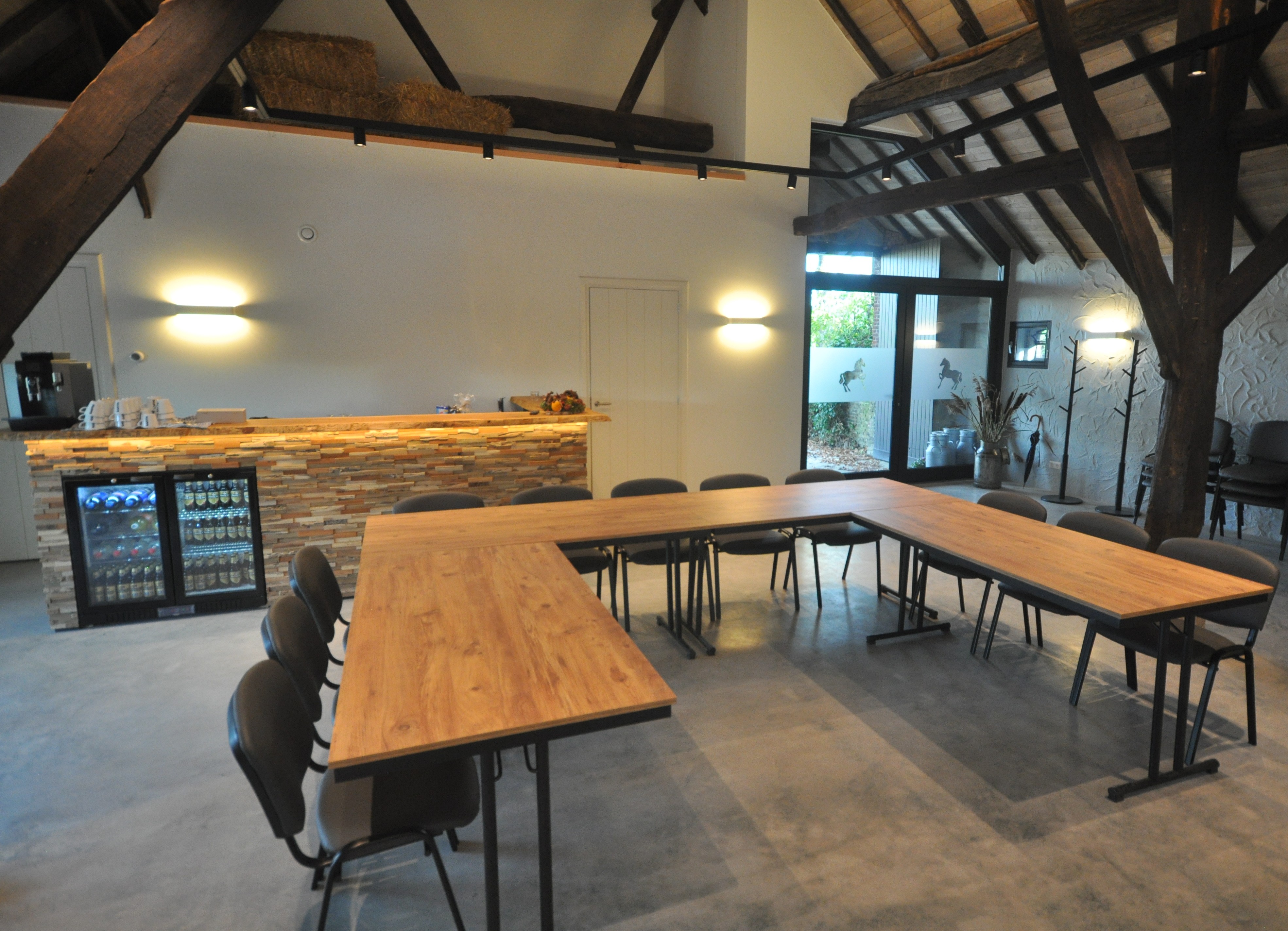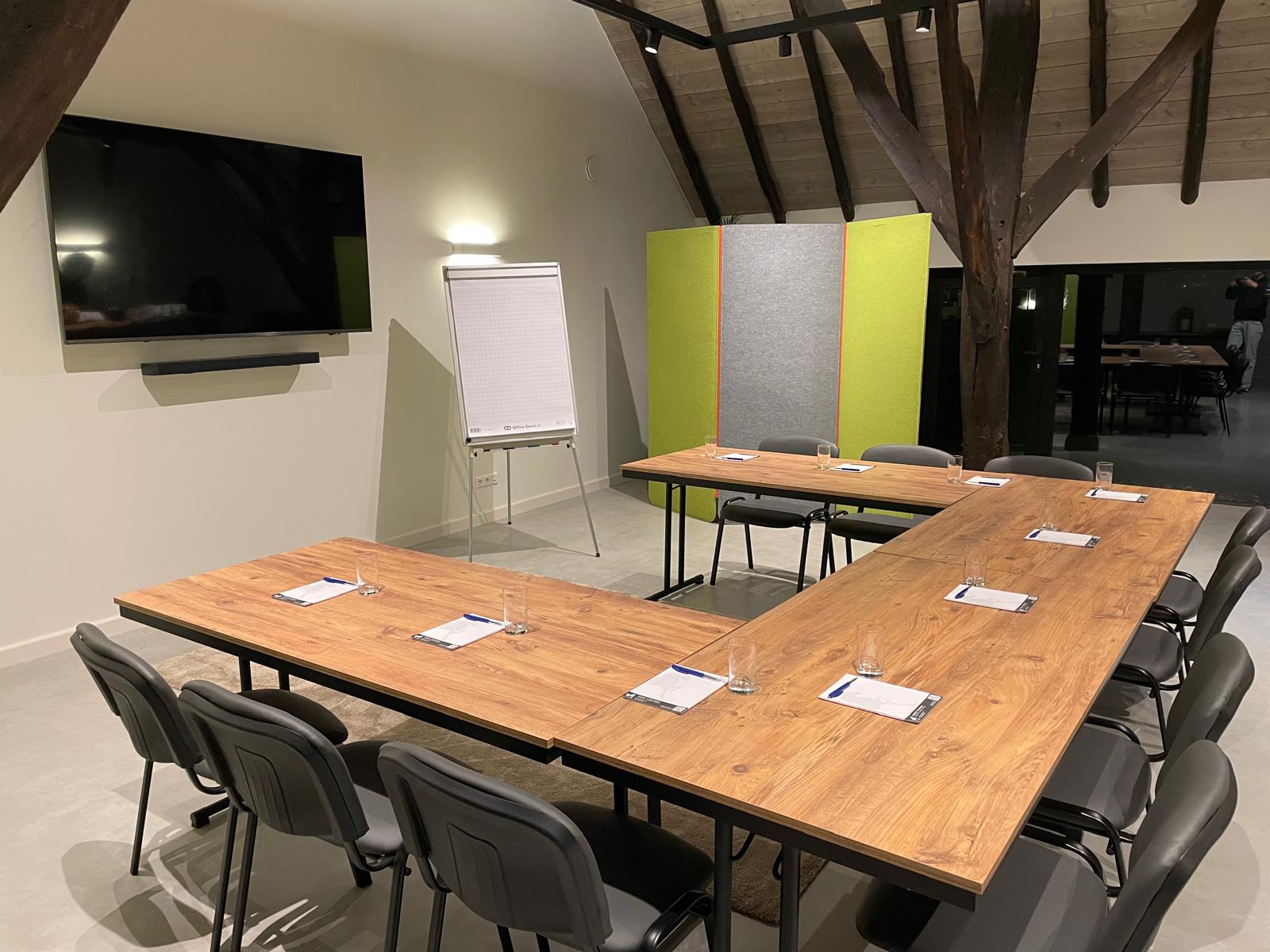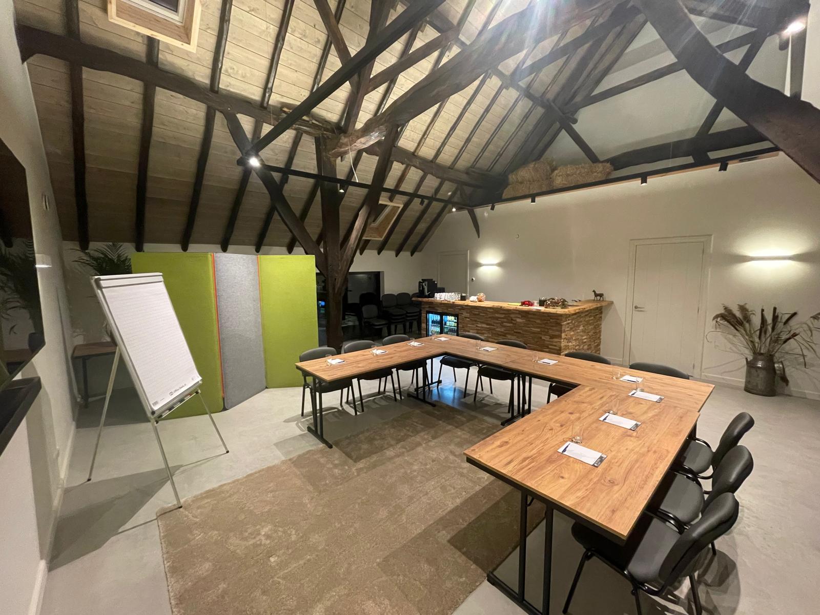 Welkom in deze bijzondere vergaderruimte, gevestigd in een prachtig gerenoveerde Vlaamse schuur. Dit unieke gebouw is een officieel rijksmonument en ademt nog steeds de ziel van het verleden. De Vlaamse schuur is recentelijk zorgvuldig gerestaureerd waarbij de historische elementen met respect voor het erfgoed zijn behouden, terwijl het gebouw tegelijk werd aangepast aan de comforteisen van vandaag. Zo kunt u vergaderen met alle nodige faciliteiten, in een unieke historische setting.